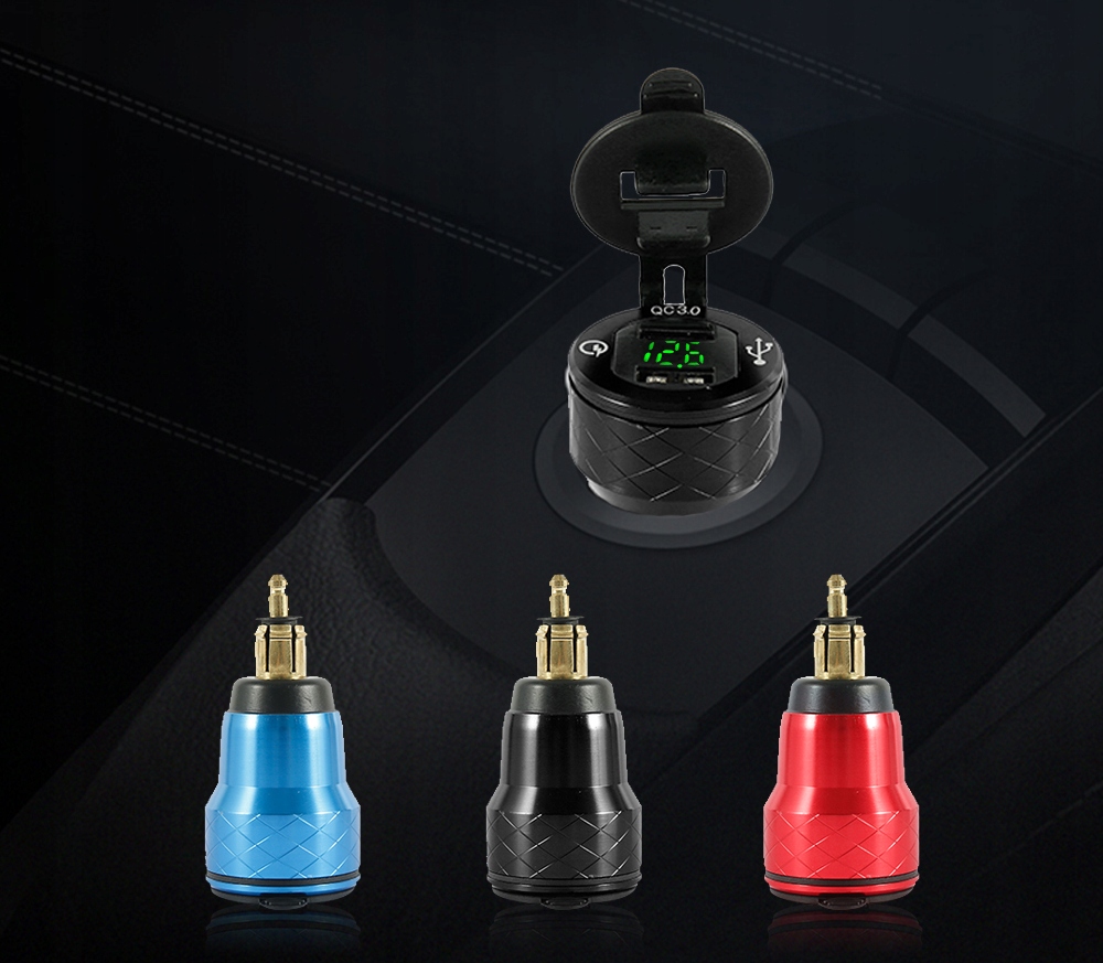 Адаптер для прикуривателя с цифровым вольтметром, отображающим текущий уровень напряжения аккумулятора, и двумя USB-портами для быстрой зарядки с напряжением QC3.0. Комплект позволяет использовать обе розетки одновременно, т.е. заряжать напр. навигация и телефон одновременно. Розетки имеют резиновую крышку, защищающую от воды и пыли. Корпус выполнен из металла, что делает изделие прочным и прочным. Чаще всего используется в BMW и грузовиках.