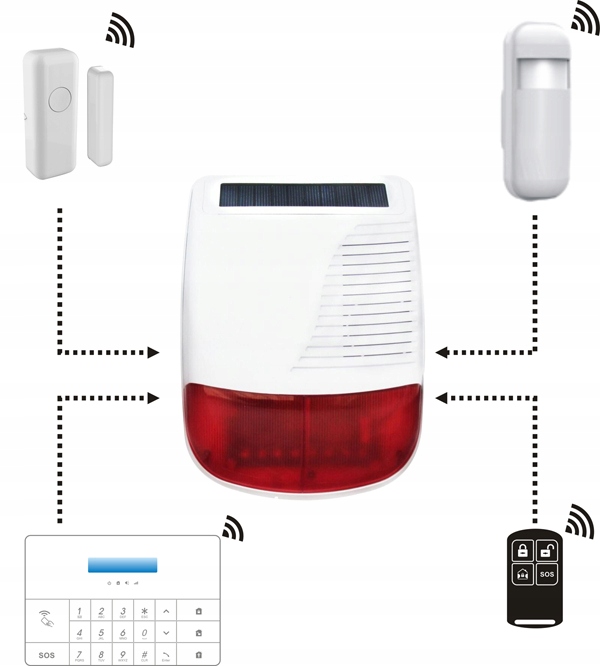 Эта многофункциональная солнечная сирена использует солнечную энергию для питания встроенной батареи, может действовать как активный хост сигнализации, беспроводная сирена.