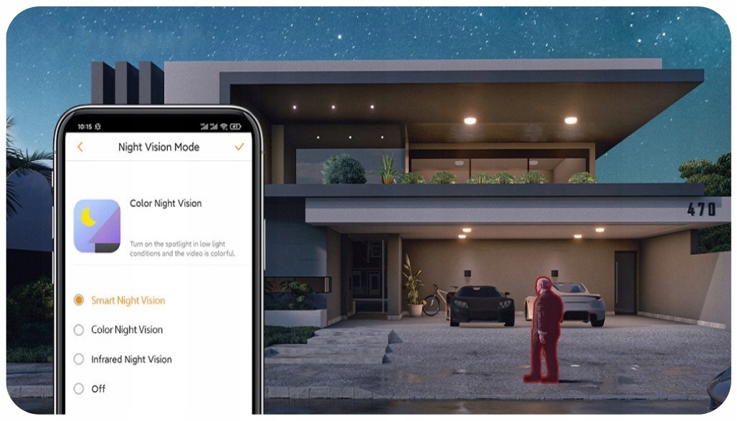 - Интеллектуальный режим - Автоматическое изменение черно-белого изображения на цветной при обнаружении камерой подозрительного движения.