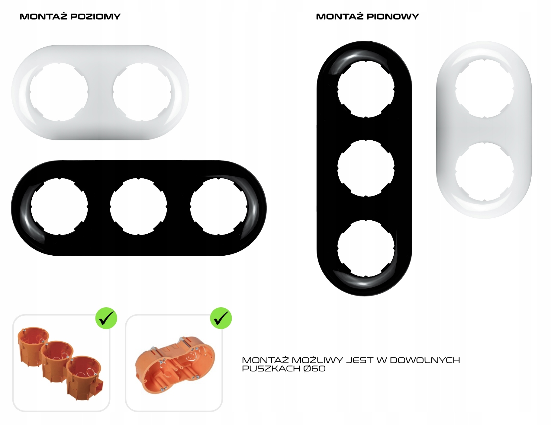 - Одиночные рамки, к которым относятся: одинарные рамки (полностью круглые), концевые рамки (разрезанные с одной стороны) и средние рамки (разрезанные с обеих сторон). «Вырезанные» рамки позволяют создавать любое количество подряд.