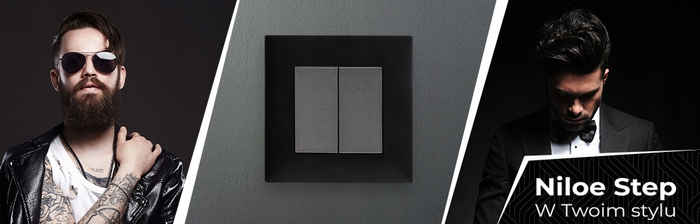 Серия Niloe Step создана для улучшения эстетики интерьера. Отделка отличается вечной привлекательностью черного цвета и классической квадратной линией. Разъемы и розетки доступны в следующих цветах: белый, черный, алюминий и сталь. Серия позволяет выбрать собственную композицию из 10 цветов рамы и 4 цветов механизма, что позволяет подобрать ее элементы к индивидуальному оформлению помещения.