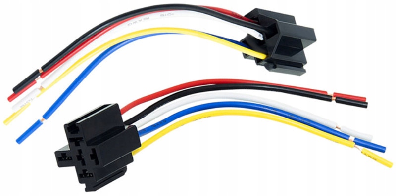 Розетки подходят к стандартным автомобильным реле (желтый, черный, красный, синий, белый).