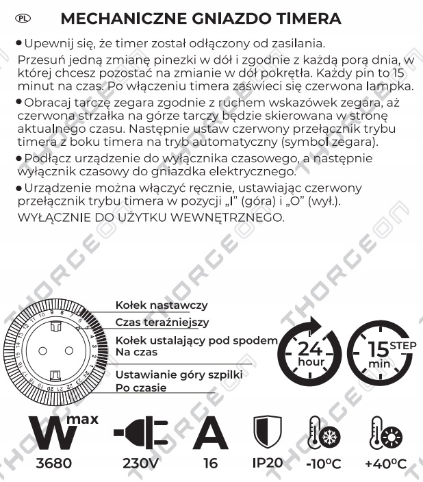 THORGEON Механическая розетка с таймером 24 часа 15 минут