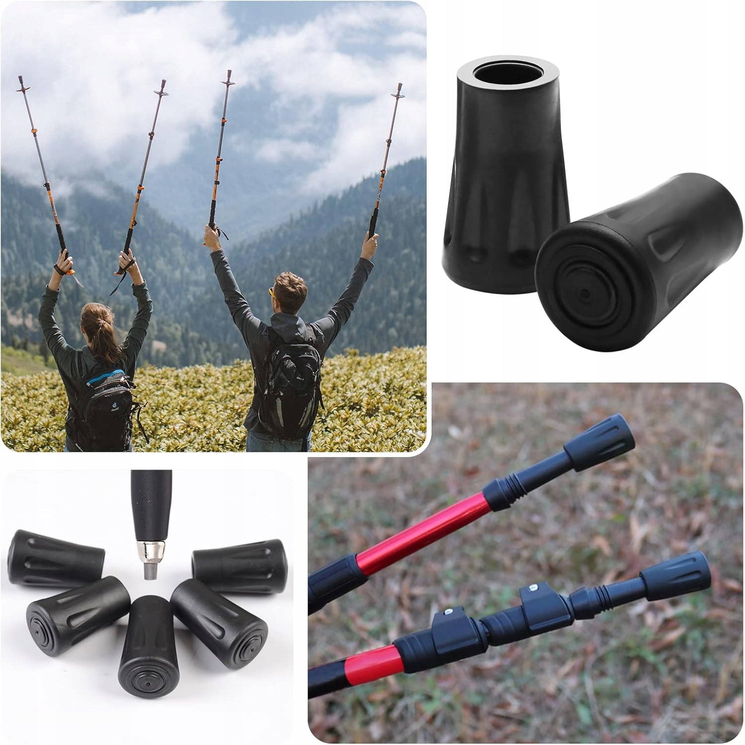 Советы по трекинговым палкам и палкам для скандинавской ходьбы. Они помогают защитить кончики шестов от истирания и не позволяют им застревать в земле, обеспечивая полную безопасность при ходьбе. Накладки изготовлены из высококачественной резины, устойчивой к сложным погодным условиям. Диаметр отверстий колпачков 10-11 мм. Таким образом, чехлы подходят к большинству палок, представленных на рынке.