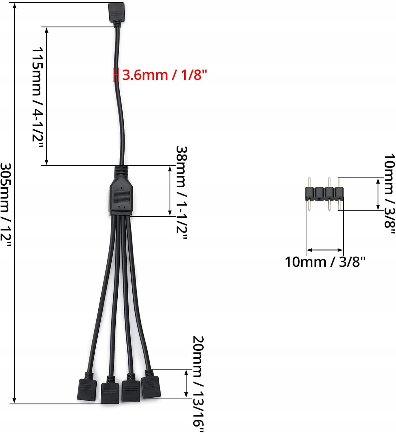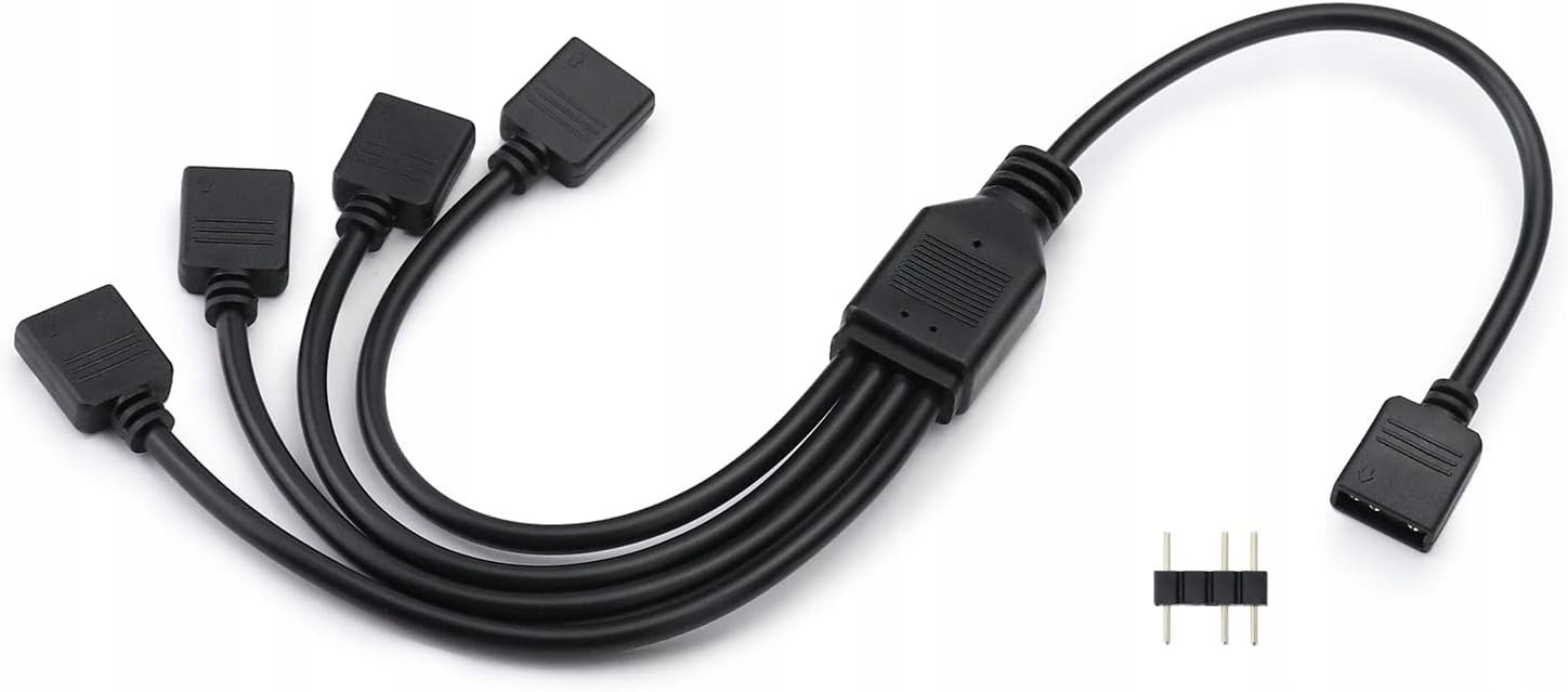 Разветвитель и удлинительный кабель ARGB: преобразует 3-контактный адресный разъем для светодиодов RGB 5 В в четыре адресуемых 3-контактных разъема для светодиодов RGB 5 В.