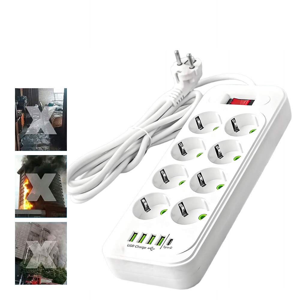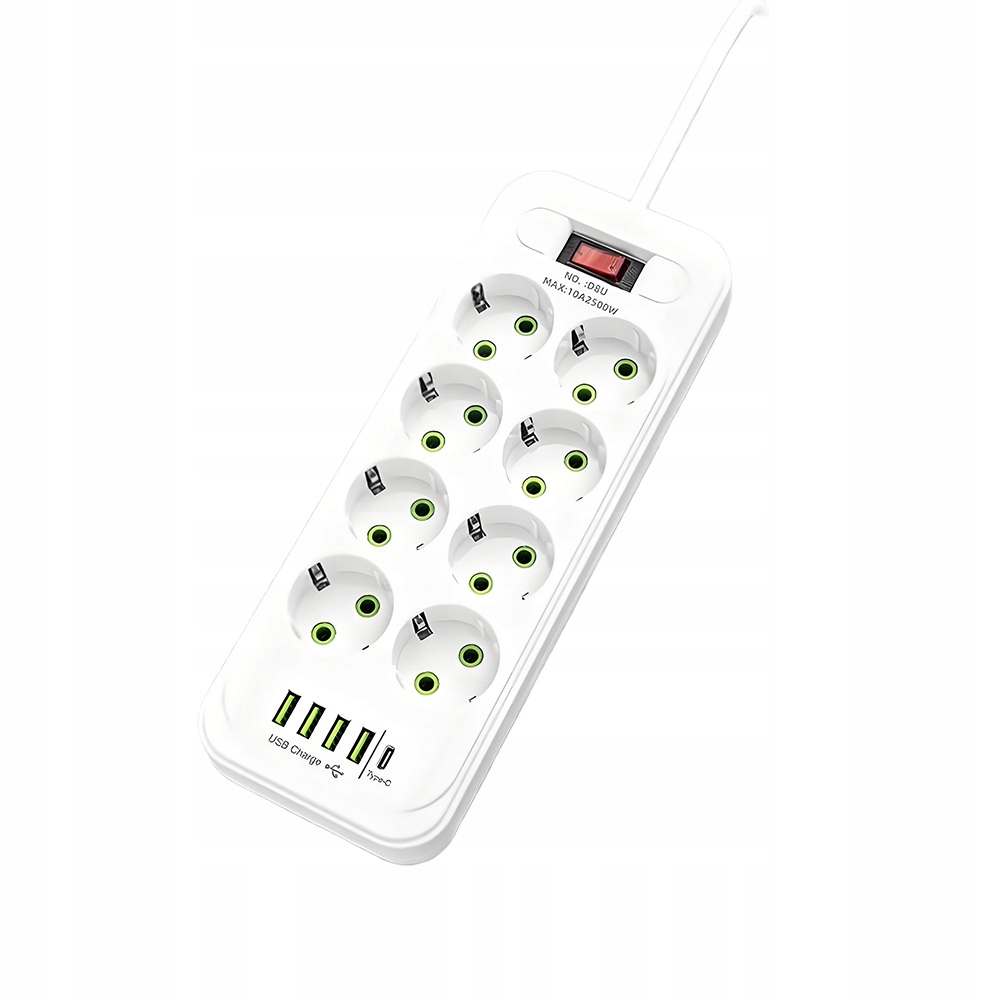 Удлинительный кабель, 2 м, разветвитель, 8 розеток + 4 разъема USB, 1 разъем Type-C, 13 Вт 1