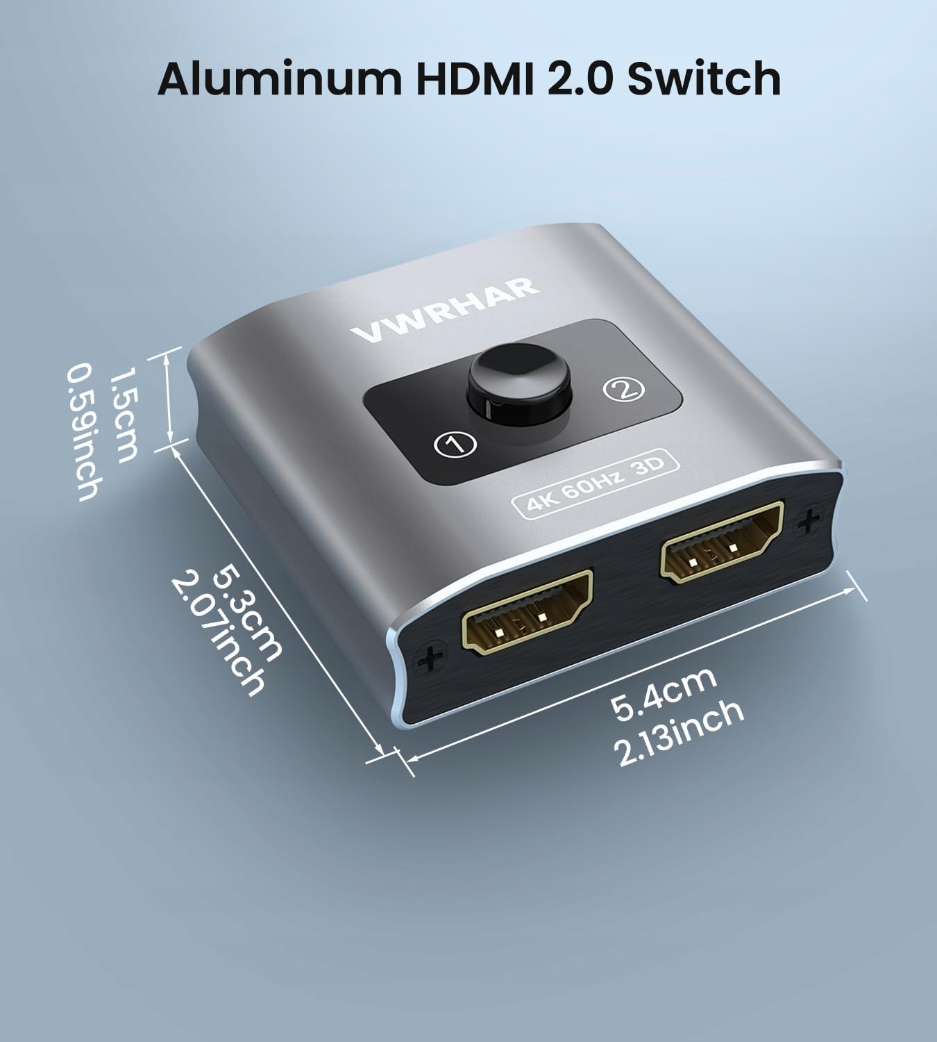Стабильная передача данных: благодаря мастер-чипу HDMI разветвитель 2 в 1 поддерживает полосу пропускания до 18 Гбит/с, стабильное и хорошее качество звука и видео. Позолоченные разъемы и медные проводники обеспечивают долговечность и надежное соединение. Никаких задержек, никаких потерь качества изображения или видео.