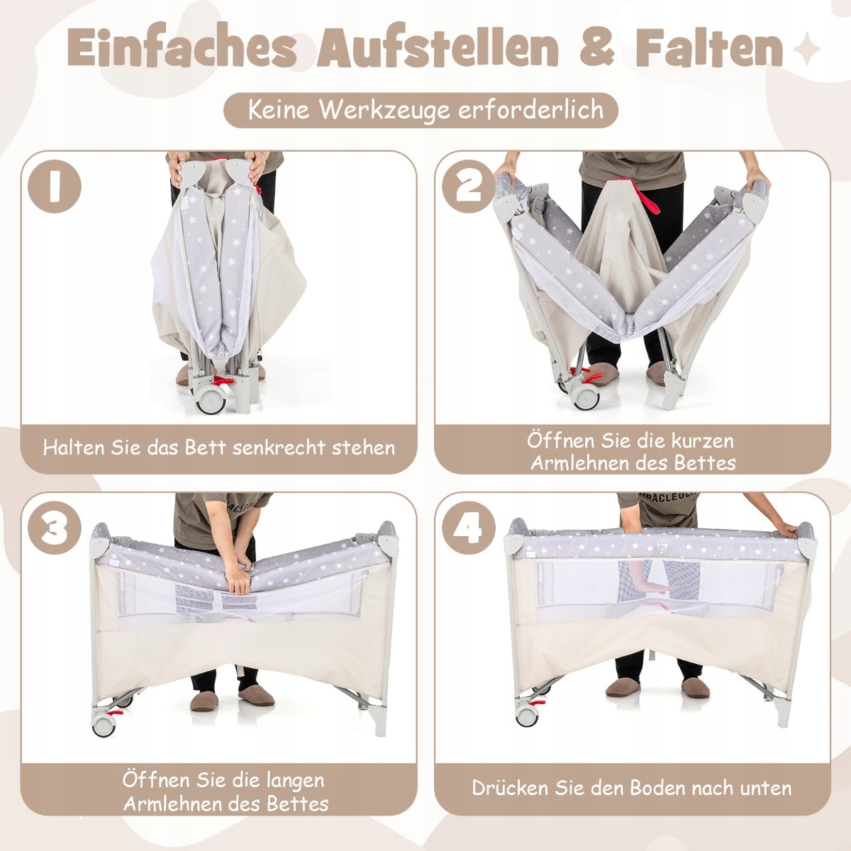 Розкладна дорожня ліжечко з 2-рівневим матрацом 5 в 1 і колесами