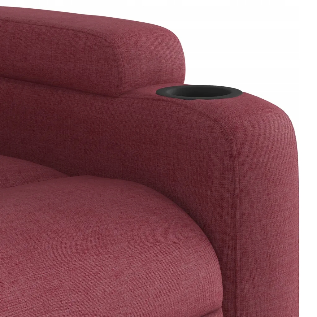Массажное кресло с откидной спинкой, винно-красное, с тканевой обивкой.