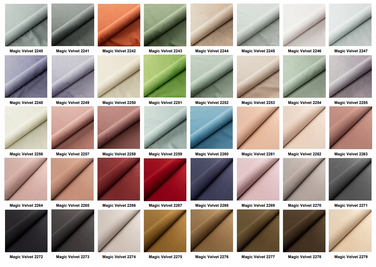 ⚪ ТКАНЬ MAGIC VELVET - пушистая мебельная ткань, необычайно мягкая и приятная на ощупь. Ткань обивки мягко оттеняет себя, отражая падающий свет. Magic Velvet вдохновляет 60 цветами в современных и классических аранжировках. Дополнительным преимуществом материала Magic Velvet являются свойства Cleanaboo, ограничивающие впитывание жидкостей. Пролитая жидкость примет форму капель, которые вы легко сможете удалить с ткани. Эта ткань сертифицирована PETPROOF, что указывает на повышенную устойчивость к царапинам и истиранию, вызванным когтями кошек и собак.