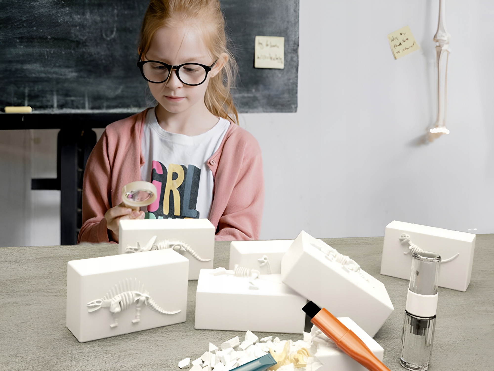Станьте палеонтологом и извлеките из гипса кости доисторических динозавров, животных, живших на Земле тысячи лет назад. Это потрясающий набор для маленького палеонтолога, который поможет развить воображение и знания о доисторических существах.