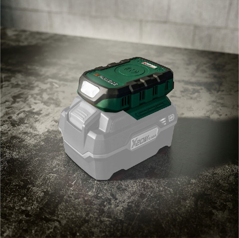 - позволяет заряжать смартфоны, планшеты или фотоаппараты с аккумуляторами Parkside напряжением 20 В.