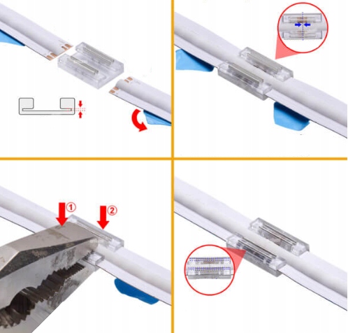 Роз'єм для світлодіодних стрічок RGB COB 10 мм, роз'єм прямий, затискач двосторонній