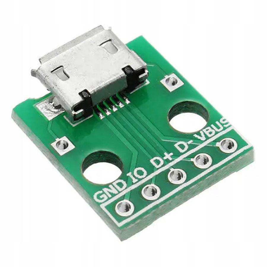 Стандартный разъем microUSB распаян на печатной плате и обеспечивает вывод всех сигналов. Адаптер micro-USB идеально подходит для прототипирования, ввода в эксплуатацию, диагностики и строительных работ. Стандартное расположение отверстий позволяет осуществлять пайку позолоченных контактов или прямую пайку проводов.