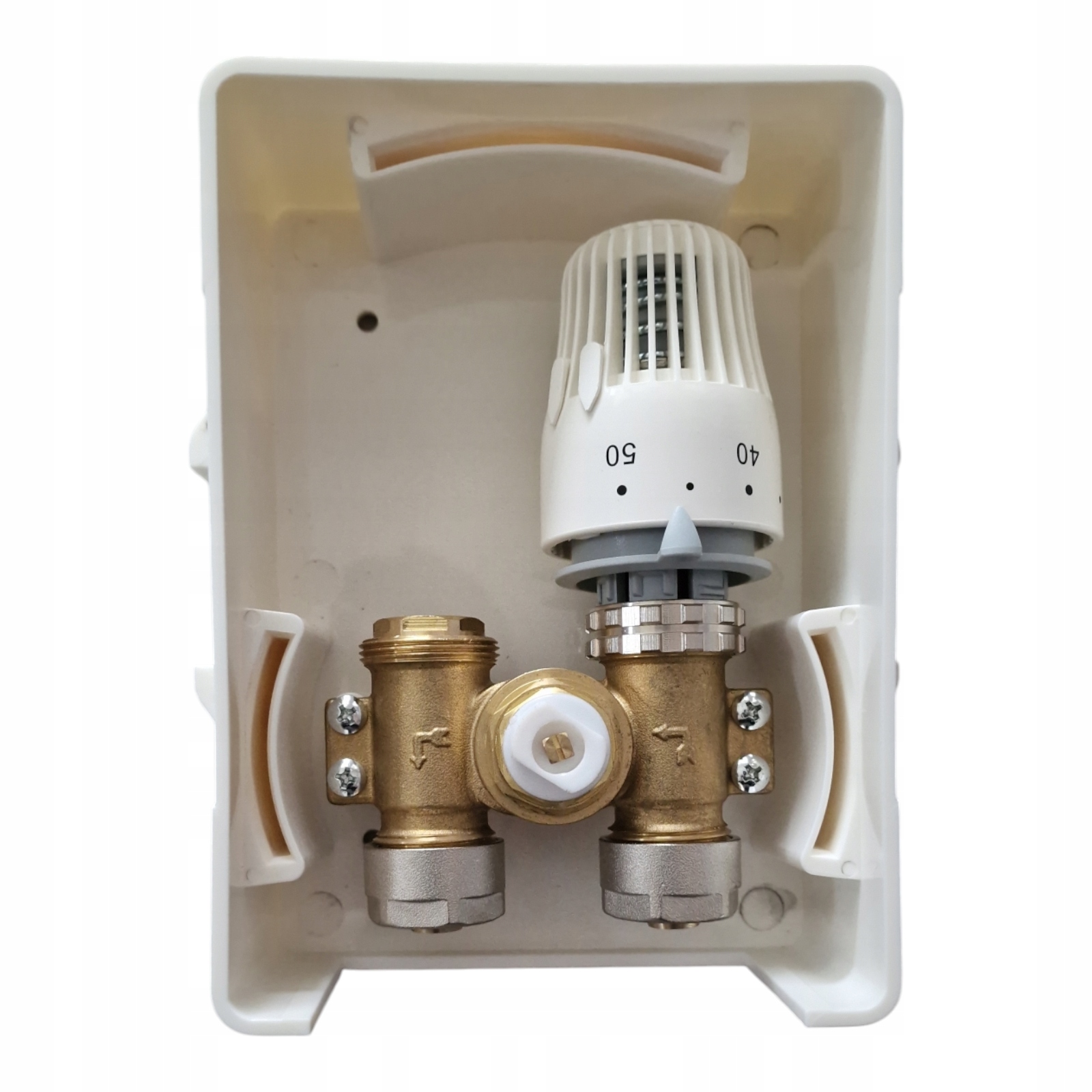 кассет -клапана с ограниченной температурой для нагрева в подлости. Он имеет RTL -головку, термостатический клапан со специализированной вставкой с увеличением потока с разъемами на PEX 16, ключевым вентиляционным отверстием. 3/4 "