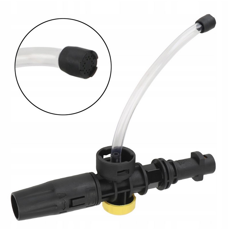Пенообразователь с пенной насадкой идеально подходит для очистки любых поверхностей, таких как краска, стекло и камень. Идеально подходит для транспортных средств, зимних садов, садовой мебели, фасадов, лестниц, фургонов, тротуаров, стен, жалюзи, террас, автомобилей, мотоциклов, велосипедов, лодок, квадроциклов, парусников и т. д. Емкость контейнера примерно 0,7 литра. Налейте моющее средство прямо в насадку для пены, подсоедините насадку к пистолету и нанесите пену. Дозу моющего средства можно легко регулировать с помощью насадки для пены (желтая ручка). Уровень струи можно регулировать по мере необходимости. Подходит для всех моек высокого давления классов от K 2 до K 7.