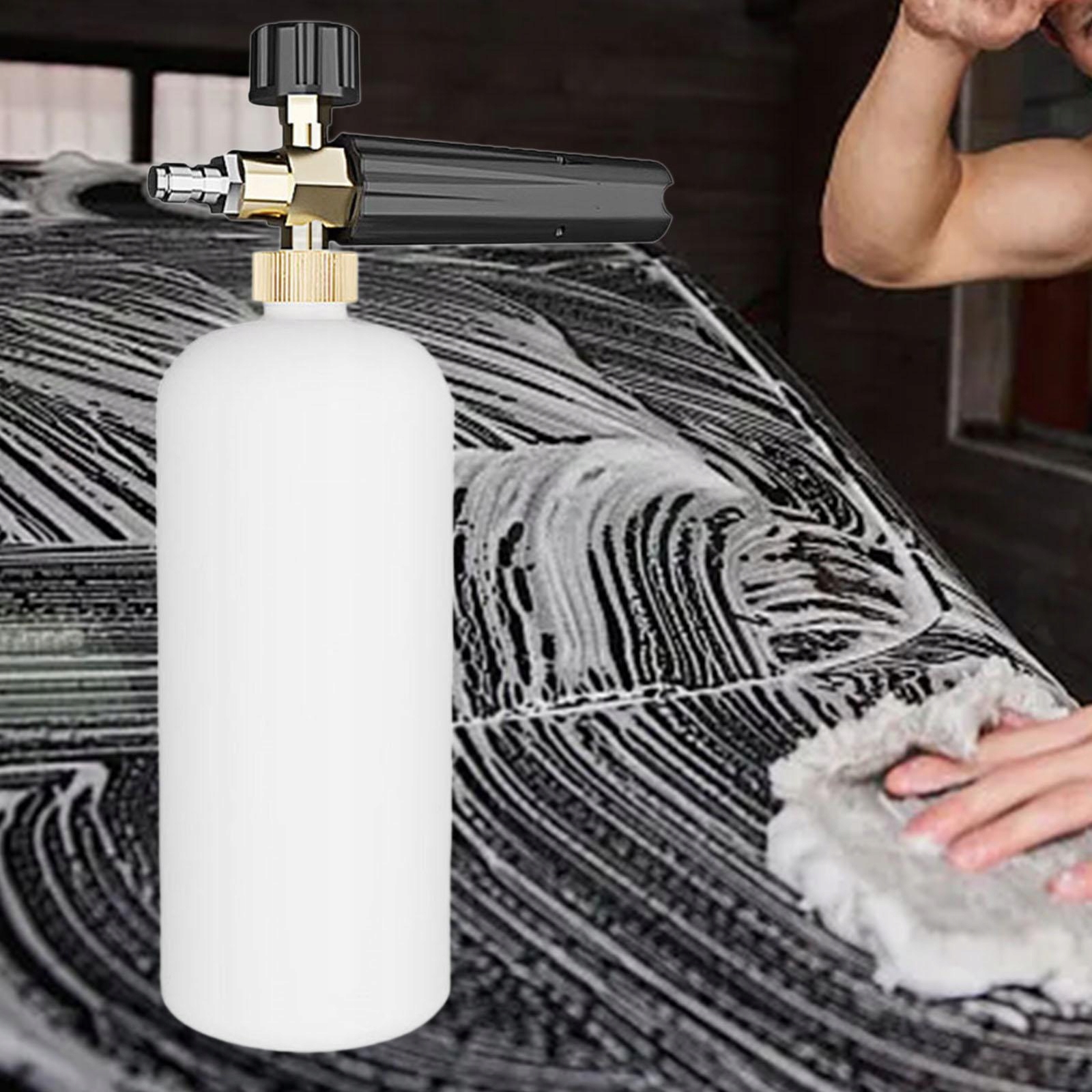 [Простота установки]: налейте немного мыла в бутылку с теплой водой, чтобы получилась густая пена; затем подсоедините быстроразъемный соединитель 1/4 дюйма к мойке высокого давления или. Наконец, отрегулируйте ручку сверху в соответствии с желаемой пеной, и распылитель пены распылит густую пену.
