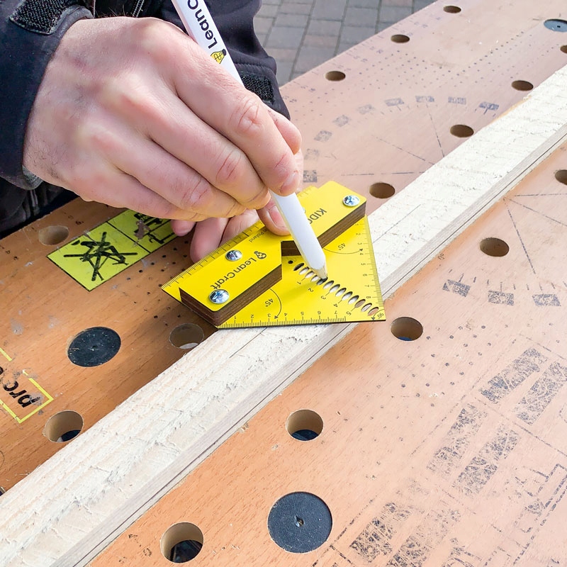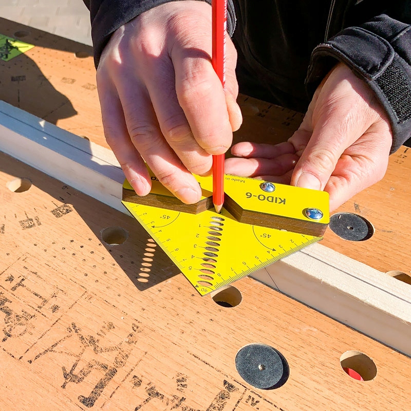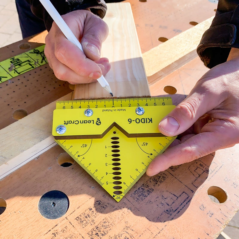 Точная разметка точек или линий в центре полоски или доски – непростая задача без соответствующего инструмента. Помня об этой задаче, мы разработали новый инструмент, который помогает выполнять точную маршрутизацию. КИДО-6 — функциональное устройство, позволяющее быстро и точно разметить продольную линию точно по центру полосы или доски. Изделие изготовлено из прочного ламината и фанеры и оснащено двумя шарикоподшипниками. Такое решение облегчает перемещение инструмента по обрабатываемой поверхности и гарантирует, что карандаш всегда будет находиться в центре доски или полосы.