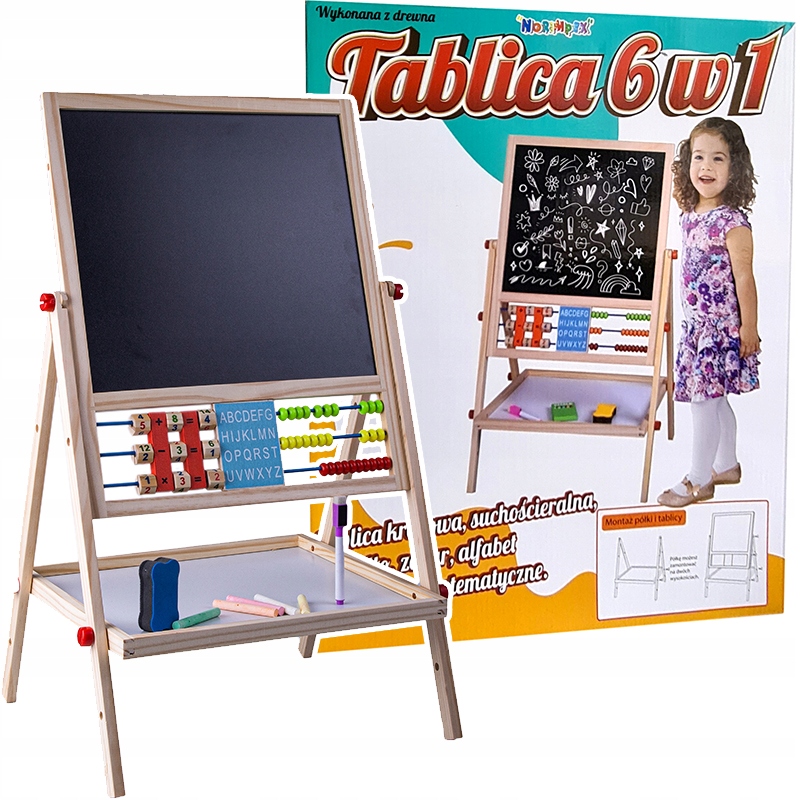 С одной стороны — меловая доска, с другой — магнитная поверхность для письма маркерами. Он идеально подходит для развития художественных навыков рисования мелом или маркером, а также обучения письму.