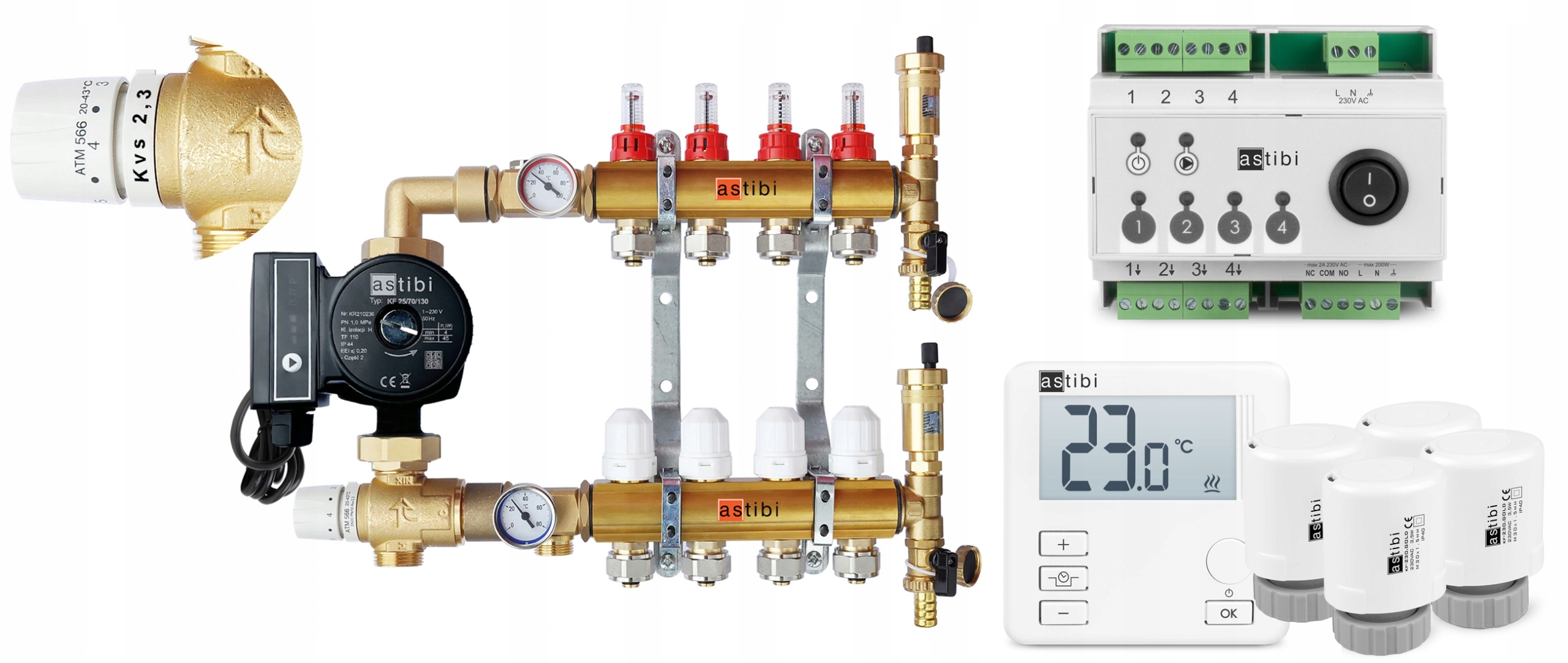 - Смесительный комплект для теплого пола с клапаном ATM566, энергосберегающий электронный насос ASTIBI 25-60/130