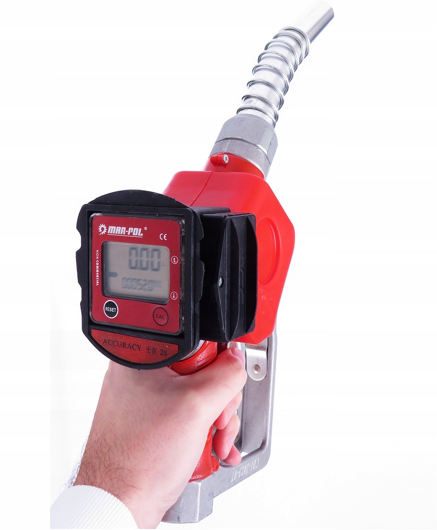 Современный топливный пистолет, оснащенный электронным расходомером и современный автостоп, пистолет отскакивает сам (с точностью +/- 0,2%).