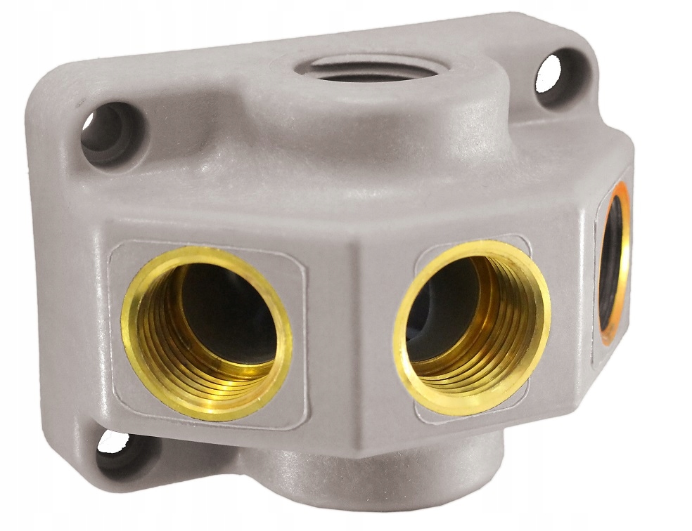 Разделительная полоса для установок сжатого воздуха из нейлона. Распределитель позволяет легко и быстро расширять системы сжатого воздуха, он имеет четыре соединения с внутренней резьбой.