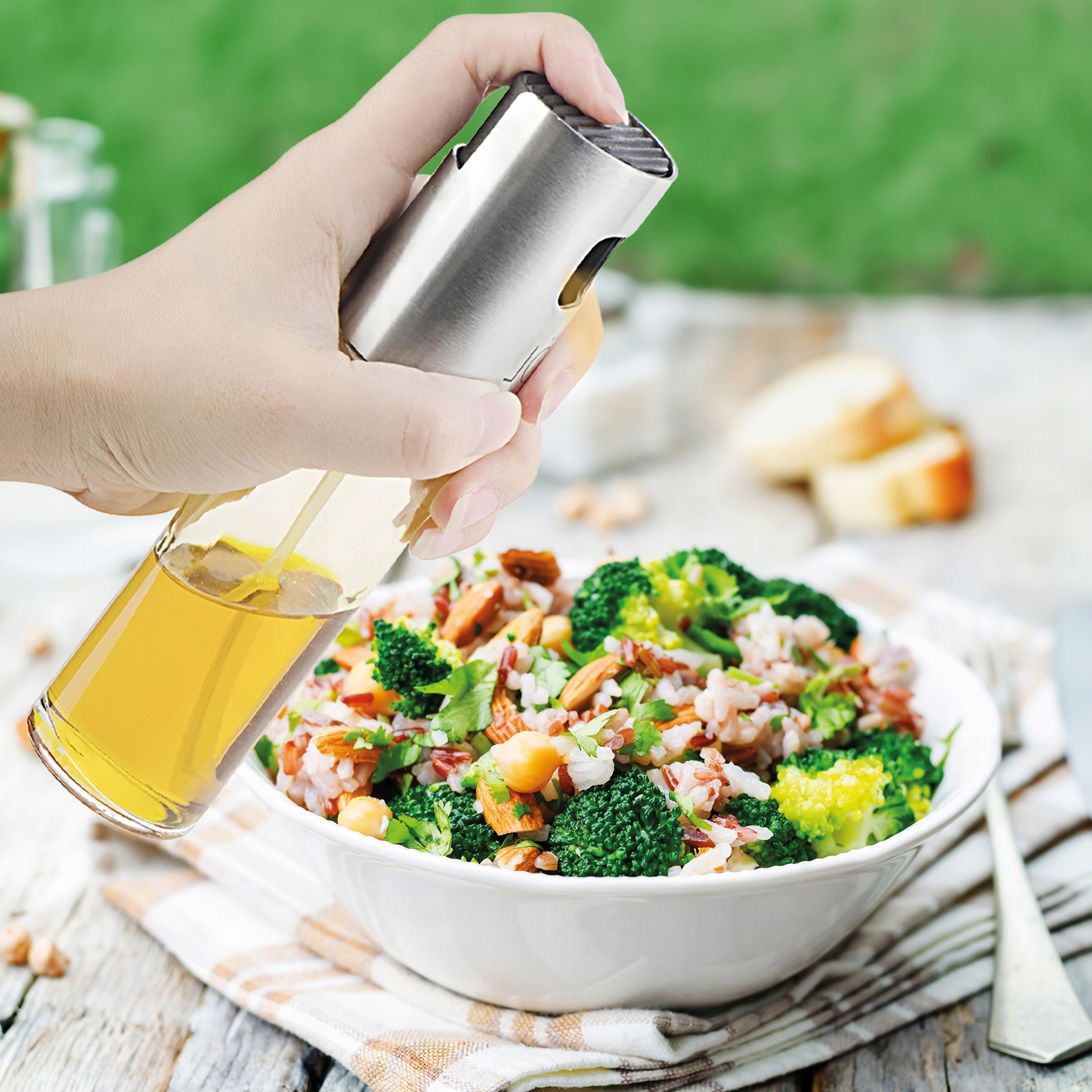 НАСАДКА-РАСПЫЛИТЕЛЬ ДЛЯ МАСЛЯНОГО УКСУСА И ДОЗАТОР ОЛИВКОВОГО МАСЛА СО РАСПЫЛИТЕЛЕМ