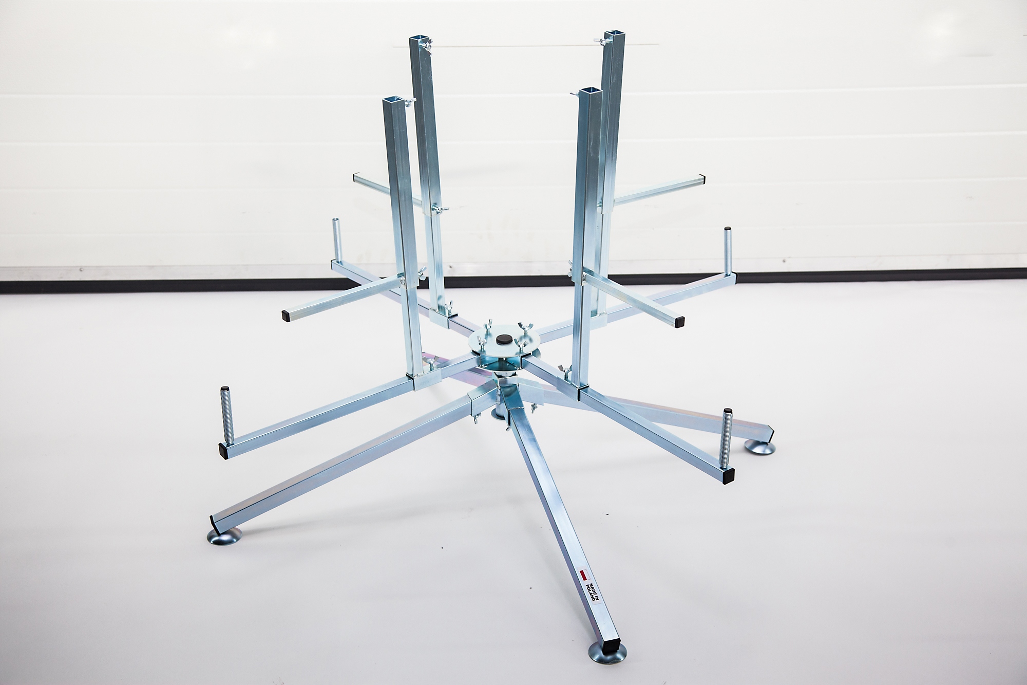 Ротари -разработчик для многопрофильных труб pex и кабелей в ганглии. Разработчик используется для быстрого разработки свитка труб при установке систем нагрева под нижней части. Разработчик облегчает и ускоряет работу установщика и увеличивает комфорт своей работы. Труба, размещенная на разработчике, не запутывается и разрушается. Благодаря легкой сборке и разборке, устройство можно легко перемещать с места на место.
