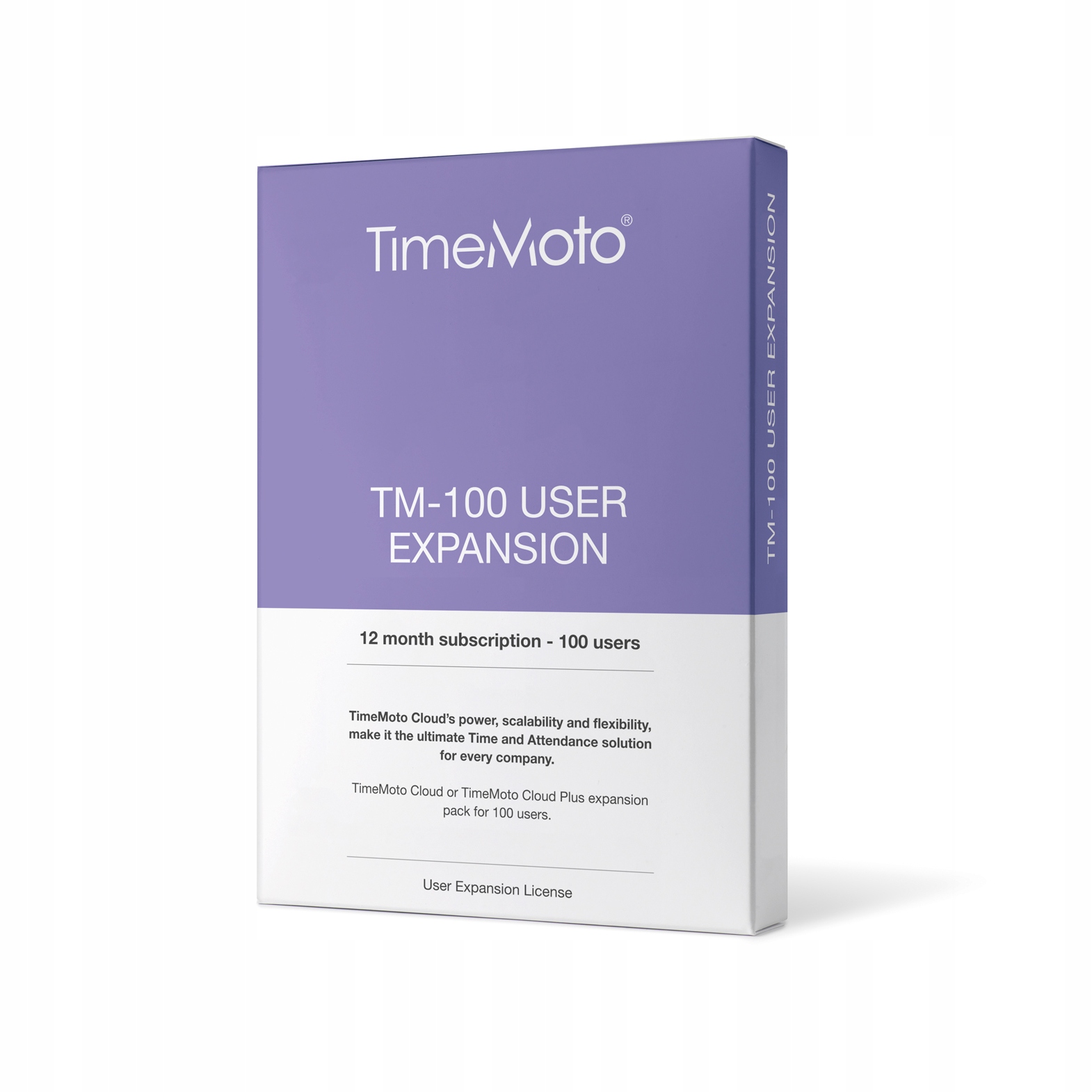 - Облачный пакет для 100 пользователей TimeMoto 100. Пользовательское расширение для TimeMoto Cloud или Cloud Plus.