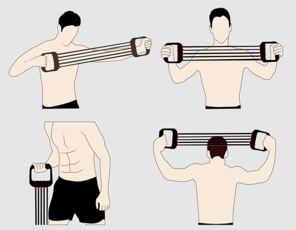 Этот удобный инструмент можно использовать по-разному. Выполняя стандартную растяжку эспандера руками на высоте груди, вы моделируете эту часть тела и свою спину. Мы также можем формировать бицепсы, трицепсы, бедра и даже пресс. Есть много упражнений с его использованием.