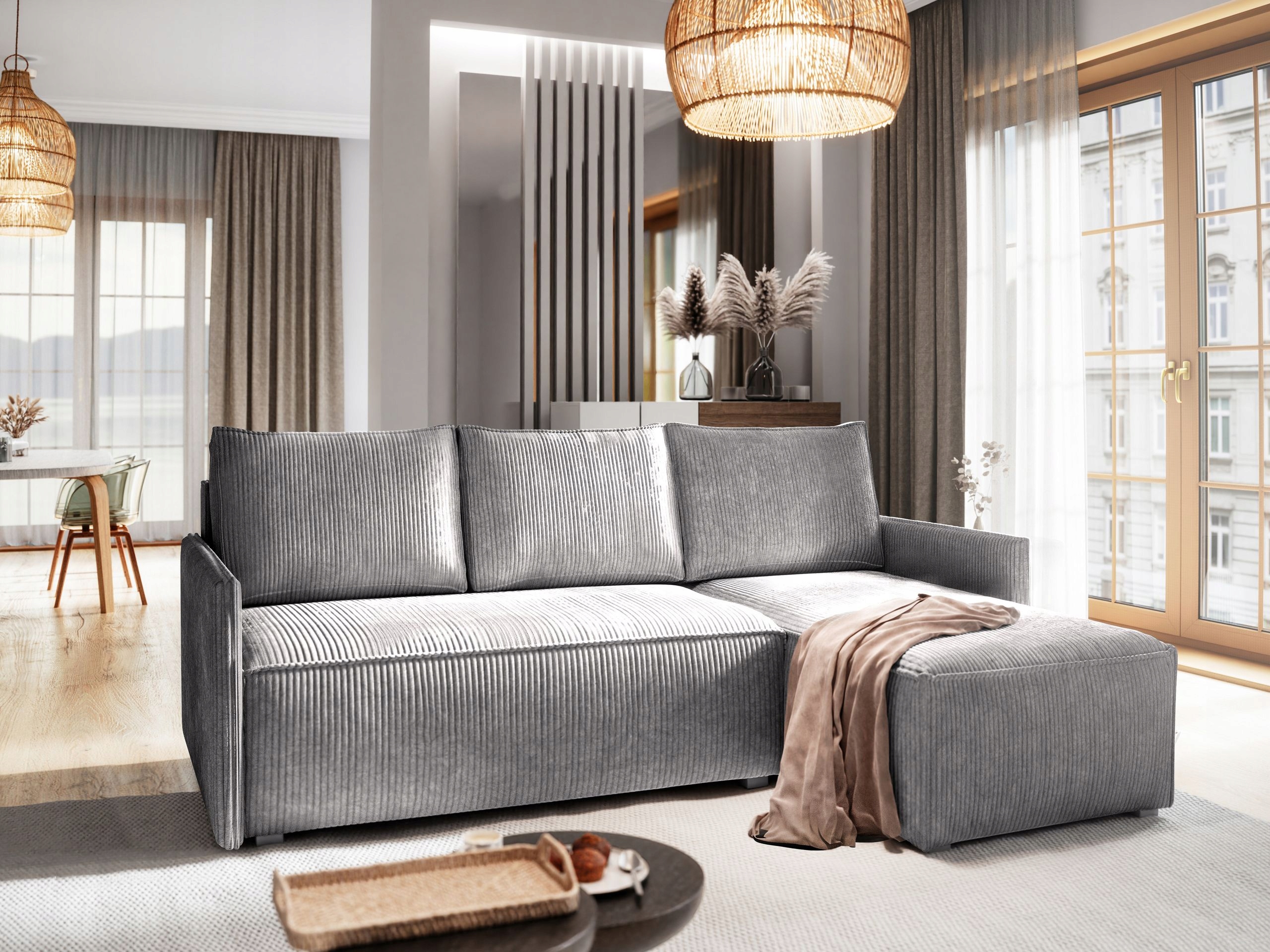 Ищете вневременную мебель для стильного интерьера? Угловой диван PERUSI – идеальный выбор для вас. Выполненная из ребристой ткани, напоминающей вельвет, она притягивает взгляды и создает невероятное ощущение роскоши, являясь настоящей визуальной достопримечательностью.