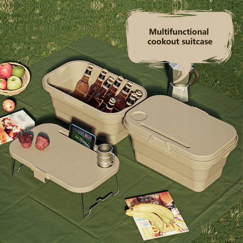 Корзина для пикника складная с функцией стола 15л 2 в 1 - цвет беж (кофе с молоком)