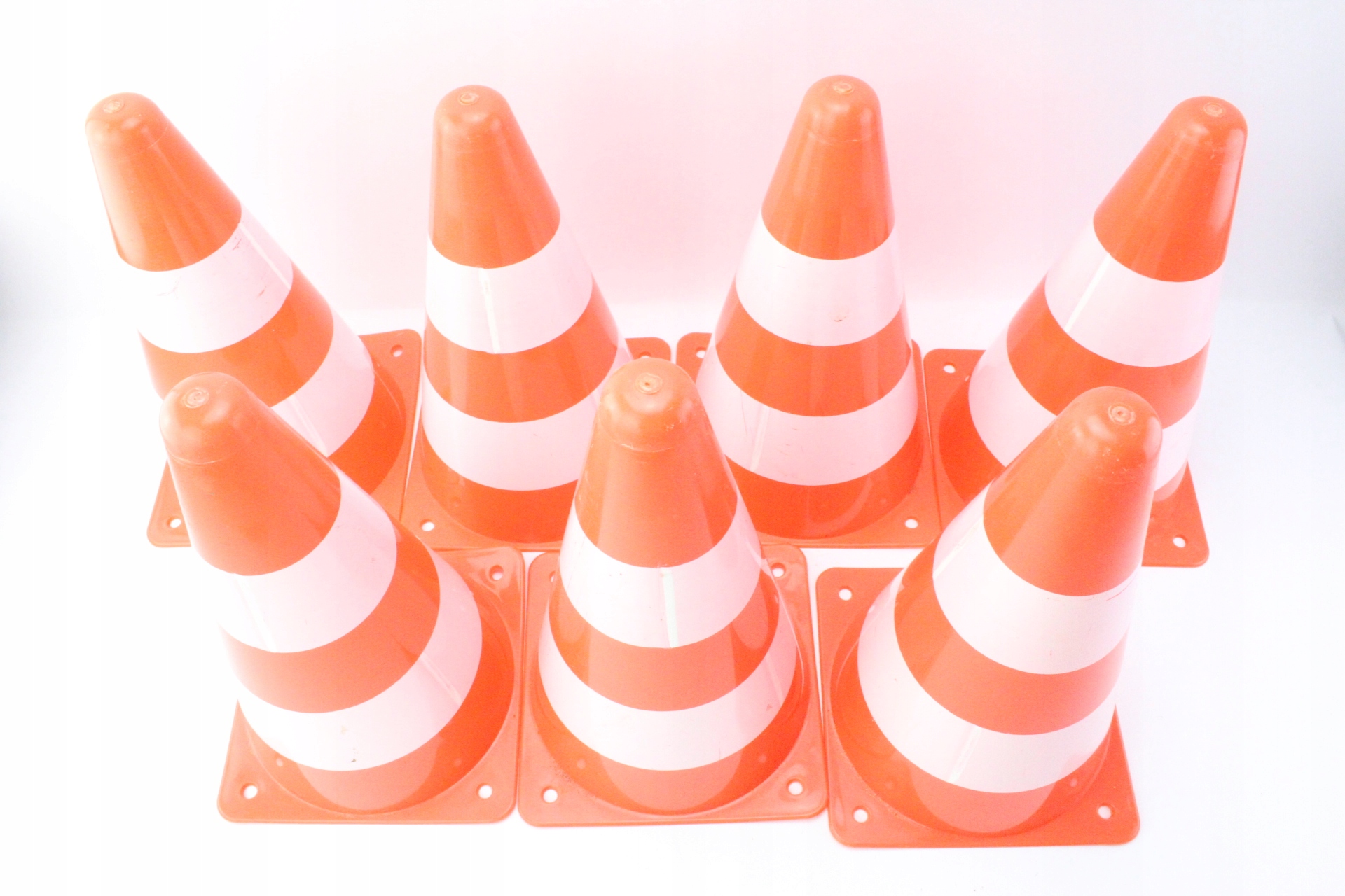 предупреждающие конусы, набор из 7 штук, можно сложить, 23 см, оранжевый/белый