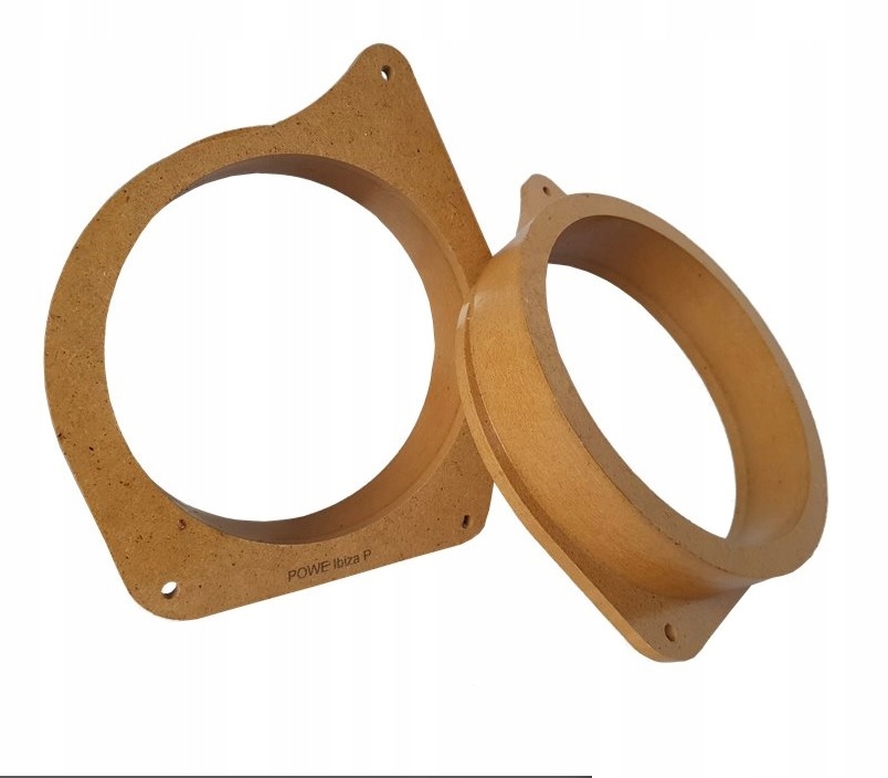 Проставки динамиков из МДФ, пропитанные и покрытые двойным лаком, предназначены для устойчивой установки динамиков в заводские места крепления автомобиля. Качество и точность изготовления обеспечивается технологией ЧПУ. Проставки Powe после фрезерования дополнительно шлифуются, а затем наносятся три слоя защиты от влаги (один слой пропитки и два слоя прозрачного лака). Шлифовка поверхности дистанционатора после фрезерования и лакирования позволяет получить плотное гладкое защитное покрытие на всей поверхности, включая линию реза, что эффективно предотвращает проникновение влаги внутрь МДФ.