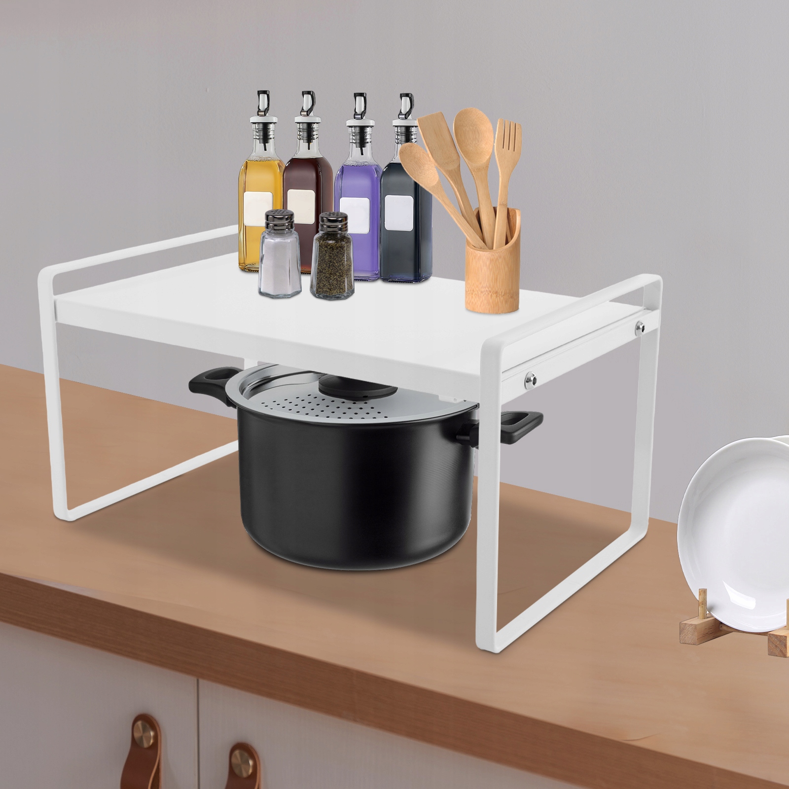 Эта расширяемая полка изготовлена из высококачественного материала, обладающего высокой несущей способностью и долговечностью. Гибкая регулируемая конструкция легко адаптируется к различным пространствам шкафа, делая хранение на кухне более удобным. Не только увеличивает пространство для хранения, но и позволяет размещать предметы с первого взгляда, что идеально подходит для современной кухни.