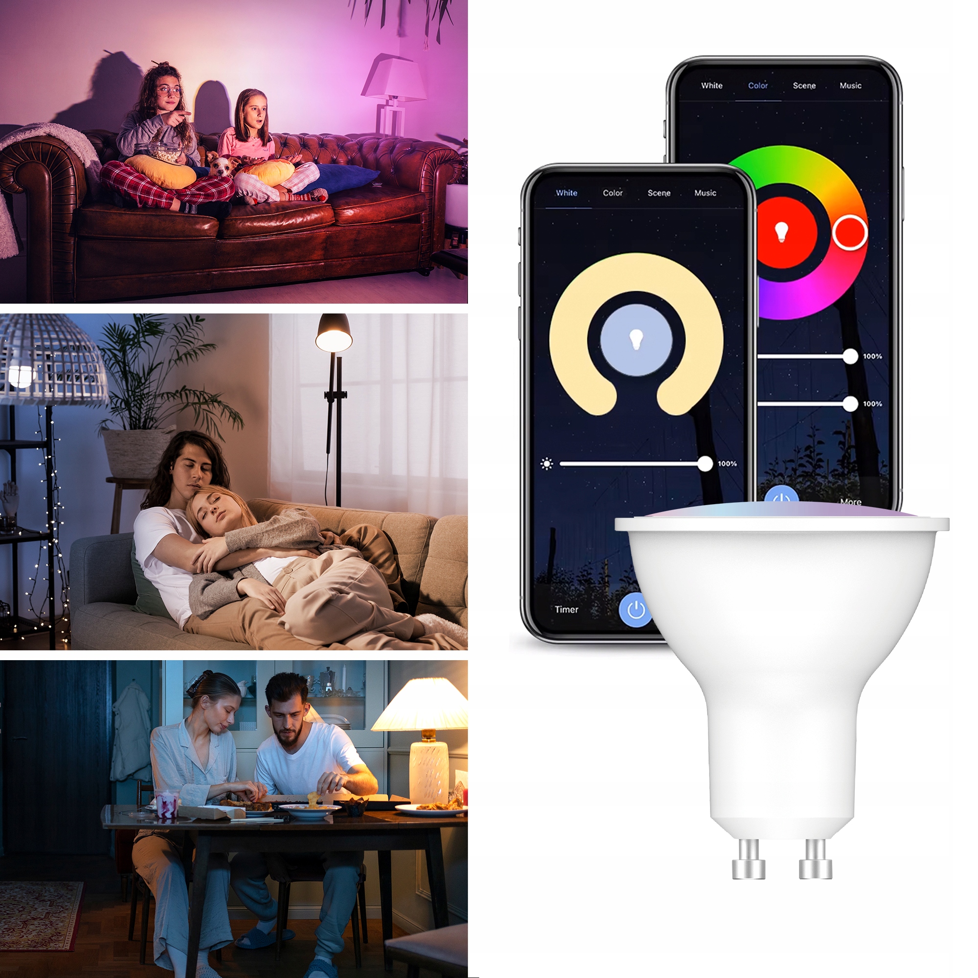 Лампа GU10 с поддержкой Wi-Fi позволяет полностью управлять с вашего смартфона с помощью таких приложений, как Tuya или Amazon Alexa. Вы можете включать, выключать и менять цвет света от теплого (2700К) до холодного (6500К) в зависимости от вашего настроения и потребностей. Это идеальное решение для современных интерьеров, где приоритетом является комфорт и индивидуальность.