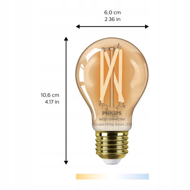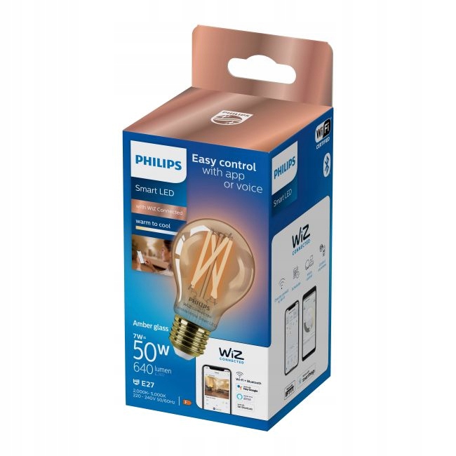 Янтарная светодиодная лампа Philips A60 E27 Smart LED — это энергосберегающая модель с длительным сроком службы. Изделие будет хорошо работать, в том числе, и в спальне. Управлять освещением можно с помощью приложения. Их можно затемнить, чтобы получить комфортные условия для отдыха. Вы также можете легко изменить цвет света. Модель янтарного цвета подходит для ретро-интерьеров.