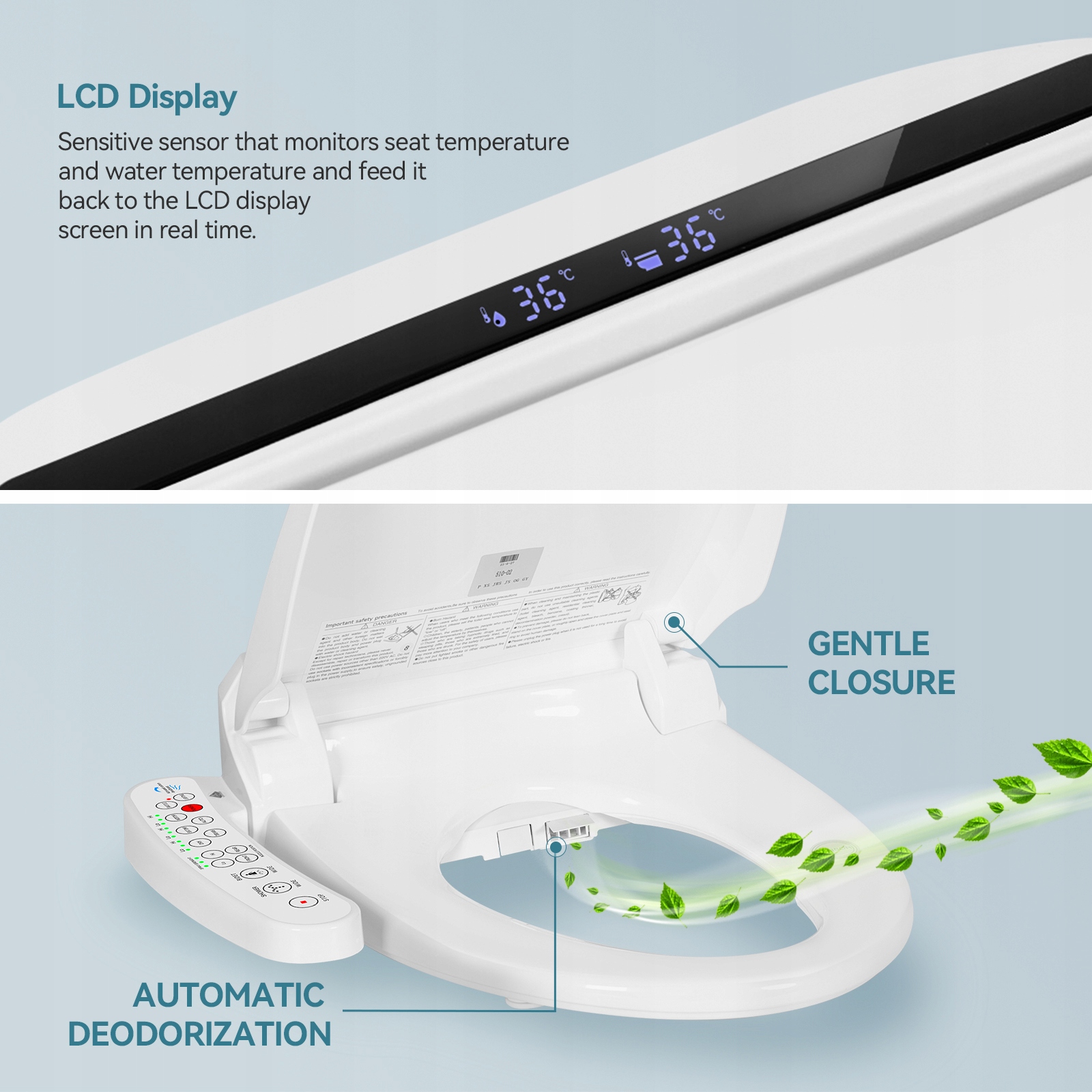 ⭐ Приспособленная конструкция и функция мягкого закрытия: имеет 3 уровня нагретого сиденья, теплой воды и сушилки, и 3 уровня разного положения сопла, давление воды и мягкое закрытие. Удовлетворяйте свои разнообразные потребности в другое время. Уменьшает энергопотребление и энергопотребление. Содействует безбумажному использованию, уход за окружающей средой.