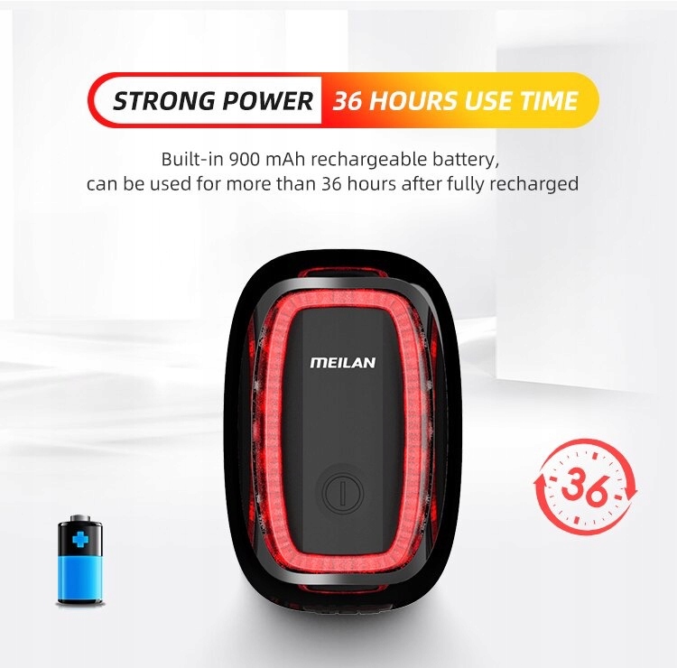 Интеллектуальный задний велосипедный фонарь Meilan X6 с датчиком тормоза.