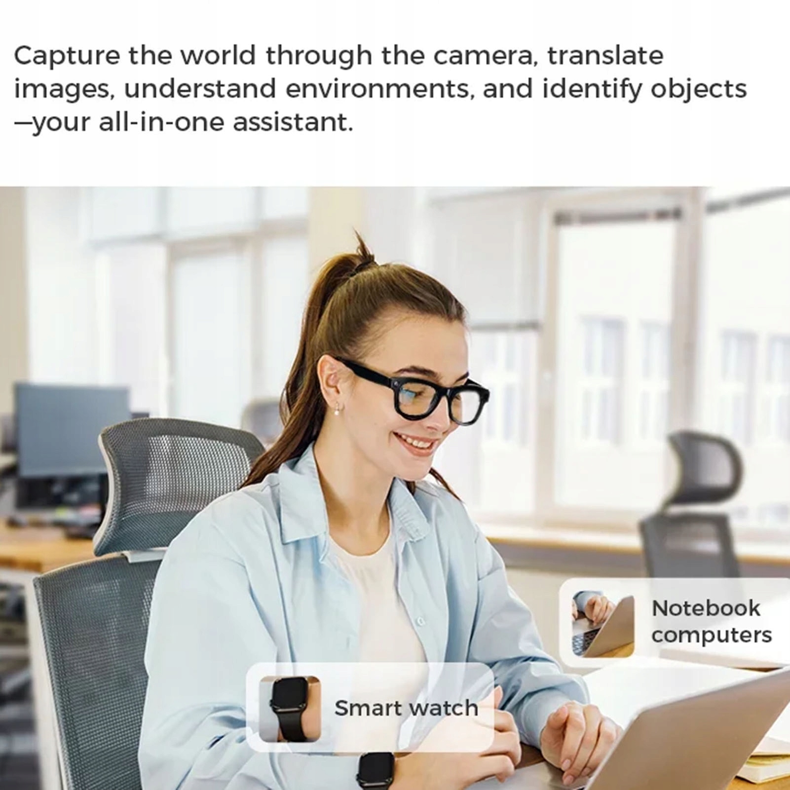 - Характеристика: камера 1080P, Wi-Fi, Bluetooth 5.4, интеллектуальное голосовое взаимодействие AI, распознавание фотографий AI, перевод в реальном времени, голос в текст, звонки, воспроизведение музыки и т. д.
