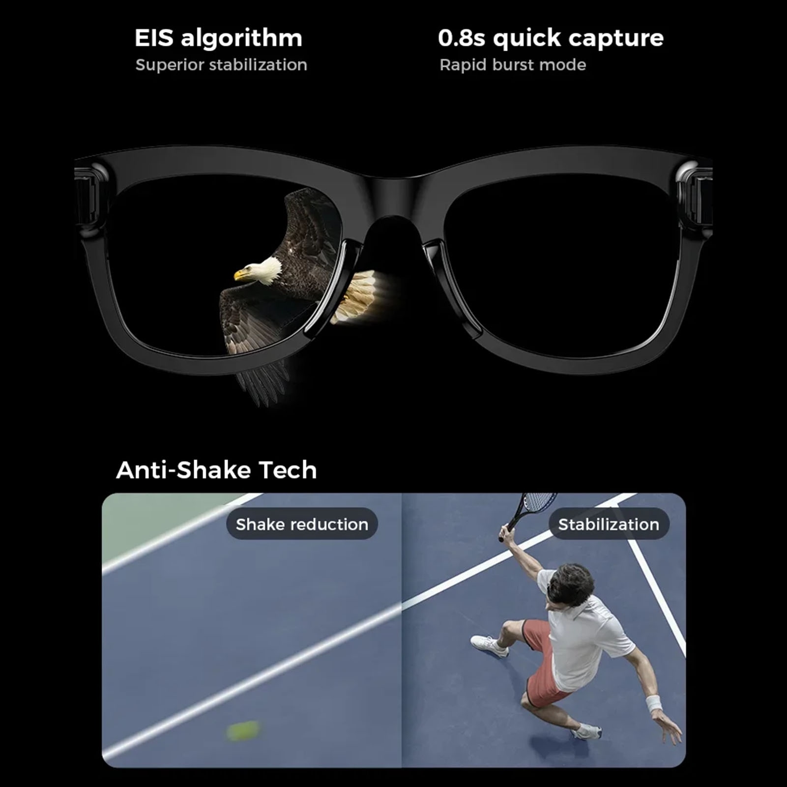 4. Ощущение погружения в музыку. Оснащенные отдельным динамиком объемного звучания и динамиком с композитной диафрагмой, умные очки AI обеспечивают насыщенные басы и громкую громкость, обеспечивая идеальное качество прослушивания даже в шумной или ветреной обстановке, с плавным переключением между любимыми песнями и звонками.