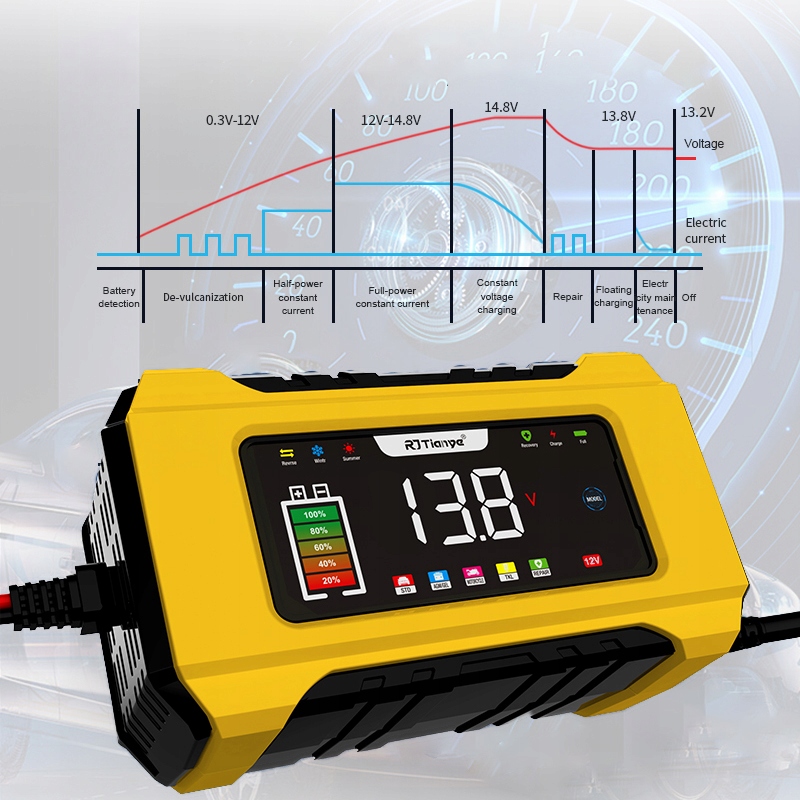 Автоматически обнаруживает сульфатацию и кислотное расслоение аккумулятора и использует новейшую функцию импульсного восстановления для восстановления утраченного заряда аккумулятора, обеспечивая более сильный запуск двигателя и увеличение срока службы аккумулятора.