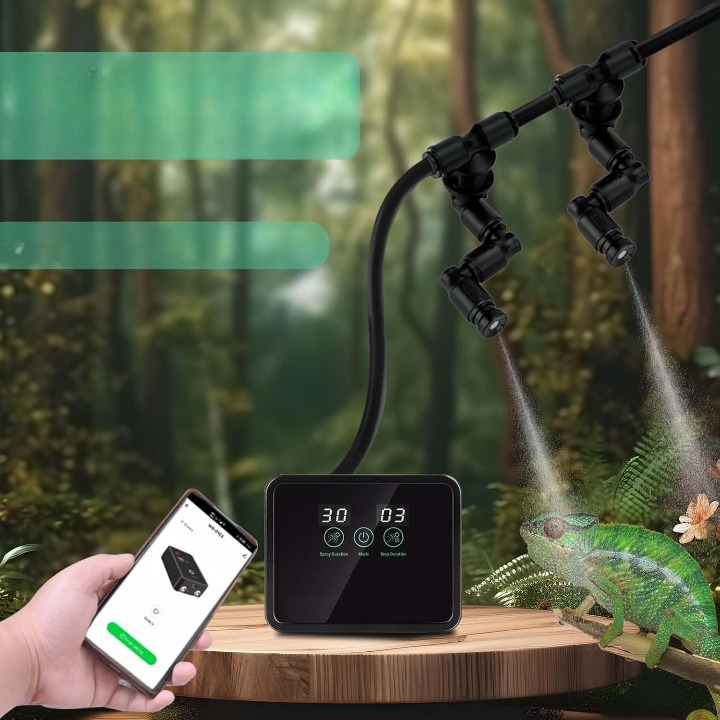 Позаботьтесь об оптимальной влажности и здоровой среде в террариуме благодаря интеллектуальной системе распыления со встроенным таймером и регулируемыми на 360° форсунками. Этот современный увлажнитель воздуха создает деликатный, равномерный туман, идеально подходящий для рептилий, земноводных, тропических растений и тропических лесов.