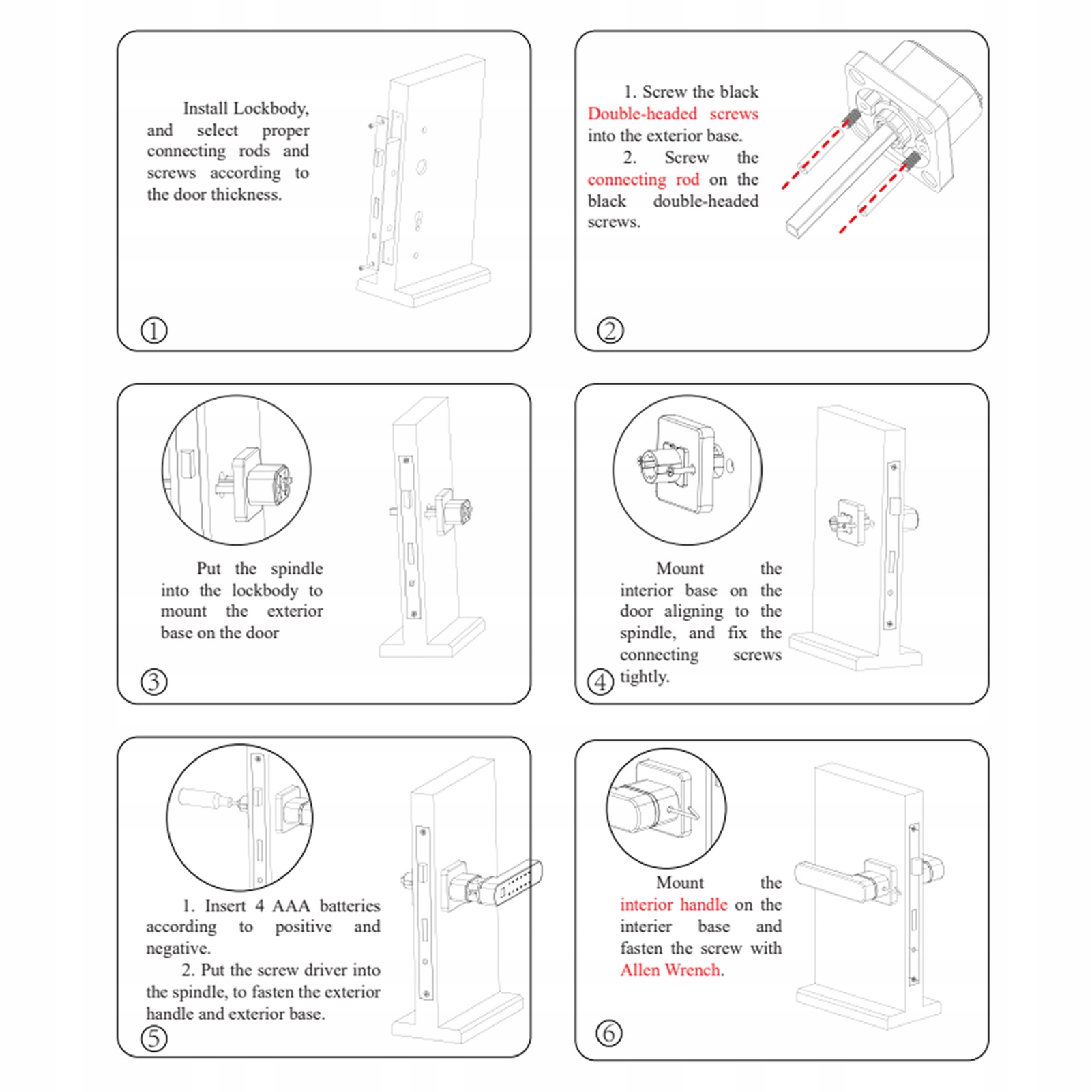 4. Установка своими руками: проводка не требуется, процесс установки прост и понятен, что позволяет каждому легко установить замок самостоятельно. Поддерживает передние и задние манекены для предотвращения подглядывания с правильным паролем из 6-8 цифр в функции кода. И с проходным режимом, когда вам нужно часто открывать/закрывать дверь.