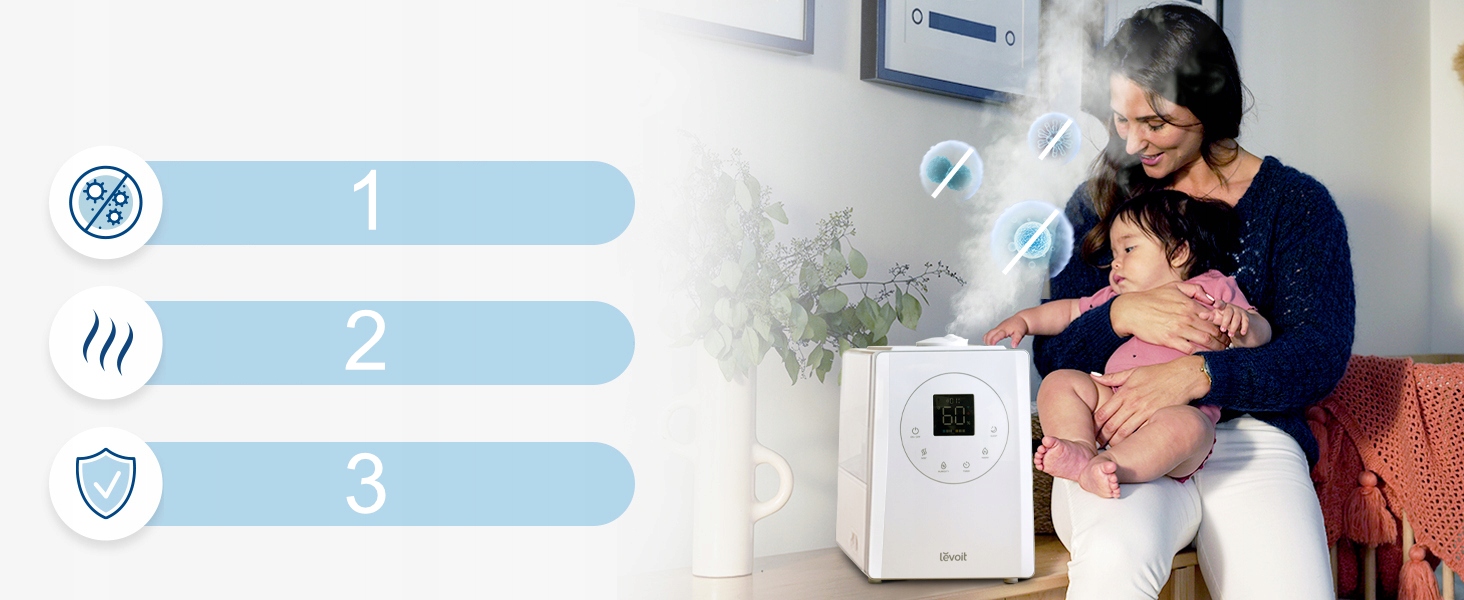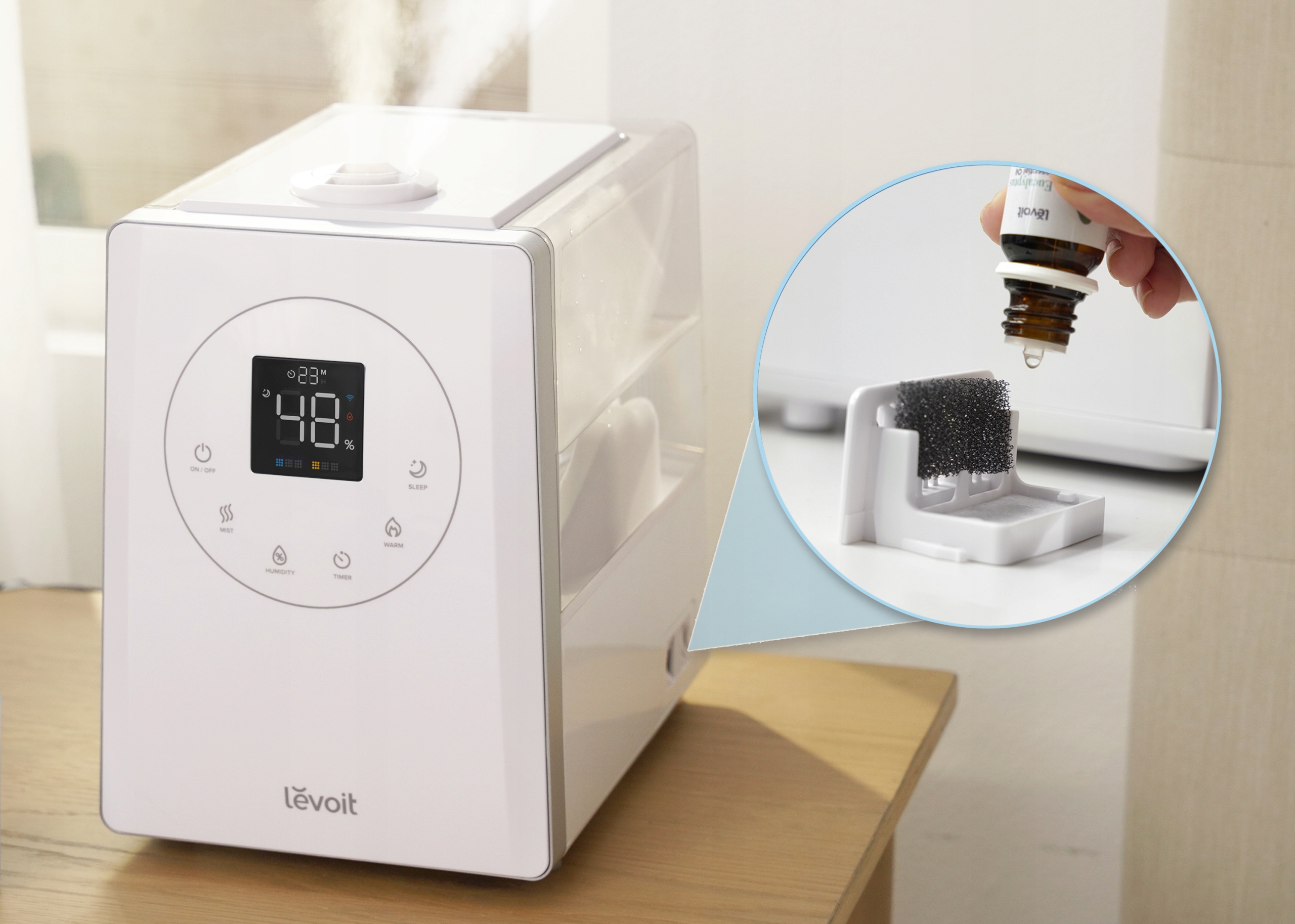 Благодаря Levoit вам не придется беспокоиться о том, что вода вытечет из увлажнителя и намокнет поверхность, на которой он расположен, например, на столе.