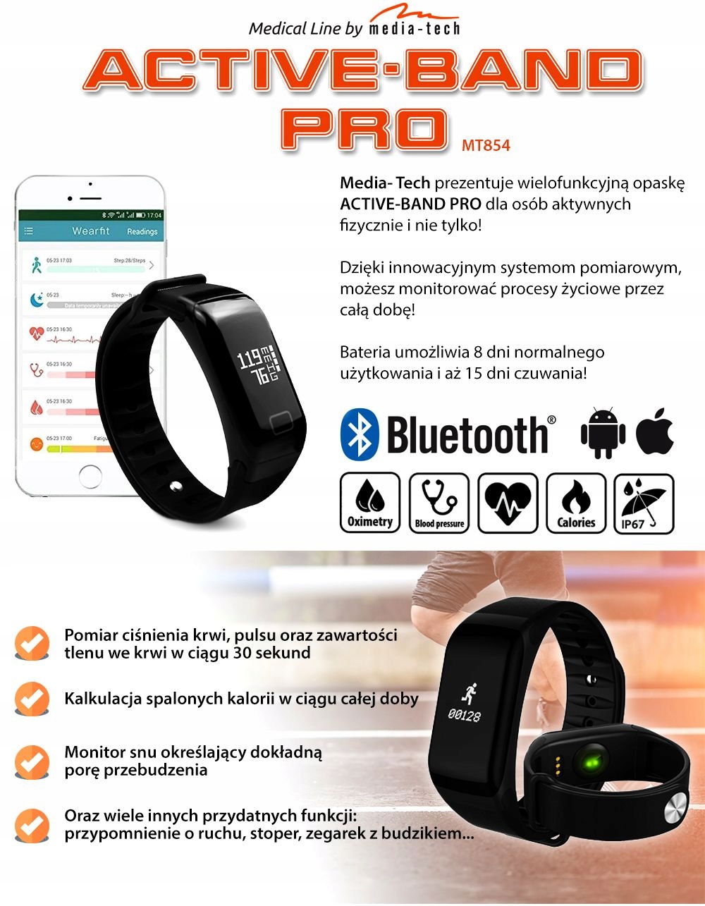 ACTIVE-BAND MT854 SMARTBAND BLUETOOTH 4.1 SPORTS BAND