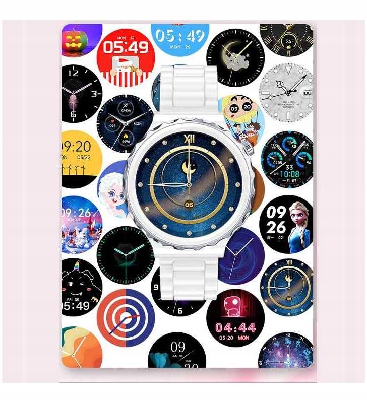 - циферблат: множество тем на выбор+ циферблаты, которые можно загрузить из приложения + собственные анимированные циферблаты
