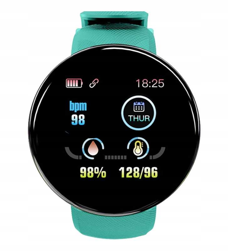 SmartWatch — ваш персональный тренер на вашем запястье, благодаря которому вы будете круглосуточно заботиться о своем здоровье. D18 – это не только элегантный и модный аксессуар, но, прежде всего, идеальное предложение для всех, кто хочет вести здоровый образ жизни. D18 показывает время, дату, считает шаги, сожженные калории, пройденное расстояние, измеряет время, контролирует пульс, давление и оксигенацию крови. Кроме того, он измеряет качество сна и подключается к телефону. Информирует пользователя о входящих телефонных звонках, SMS-сообщениях, текстовых сообщениях из нескольких мессенджеров.