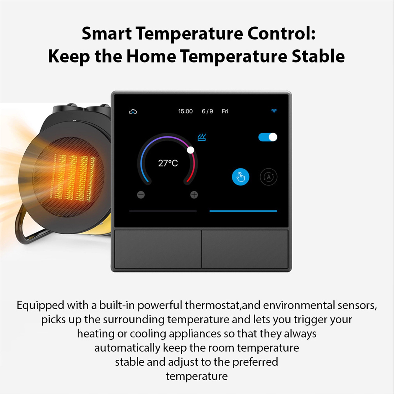 1. 【Интеграция с умным домом】: этот сценарный термостат Smart Switch WIFI объединяет управление HMI, контроль температуры NaSmart и настенный переключатель NaSmart, превращая ваш дом в комфортное и умное пространство. Всего одним касанием вы можете управлять различной бытовой техникой и улучшать свою домашнюю жизнь с помощью NaSmart.