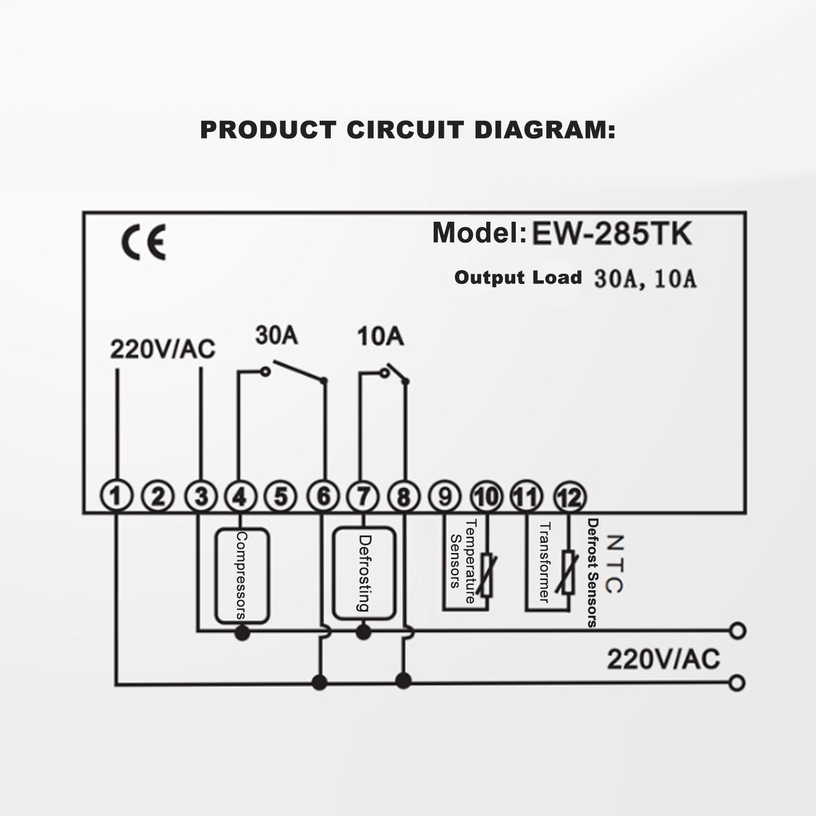 Сенсорный интеллектуальный термостат с двойным дисплеем, цифровой контроллер температуры размораживания холодильного оборудования, переменный ток 220 В